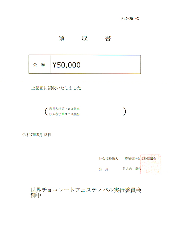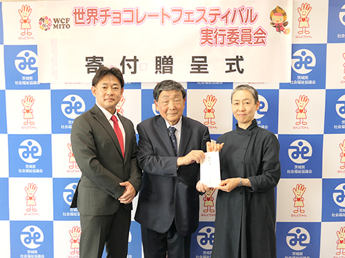 この度、第13回世界チョコレートフェスティバル開催における寄付金を、2025年5月13日に茨城県社会福祉協議会様へ寄付としてお届けいたしましたことをご報告申し上げます。今回の開催も協賛企業様、そしてご支援・ご協力頂きました皆さまに心より感謝申し上げます。